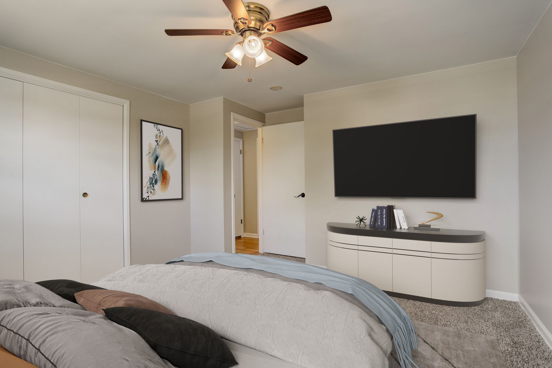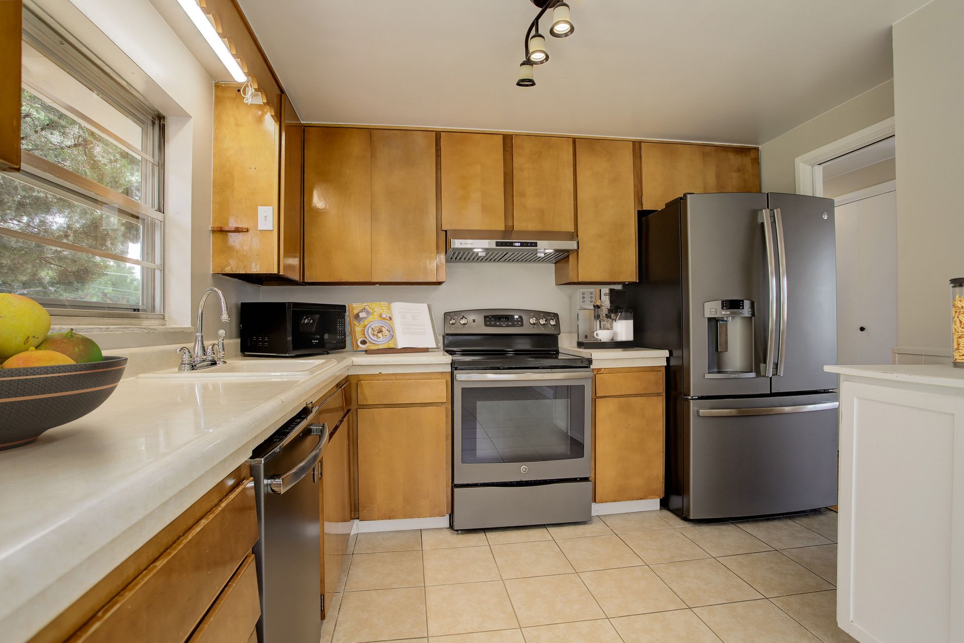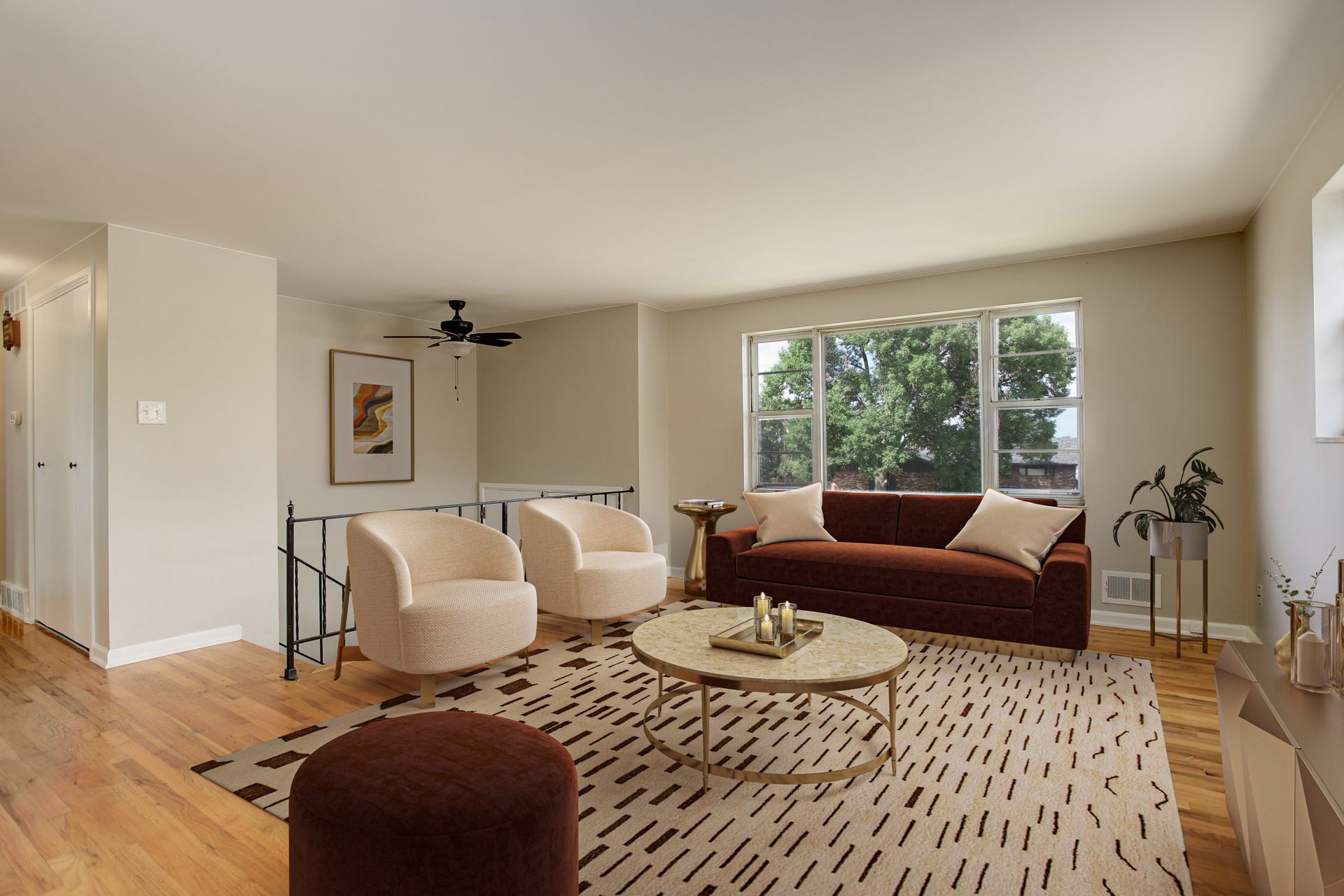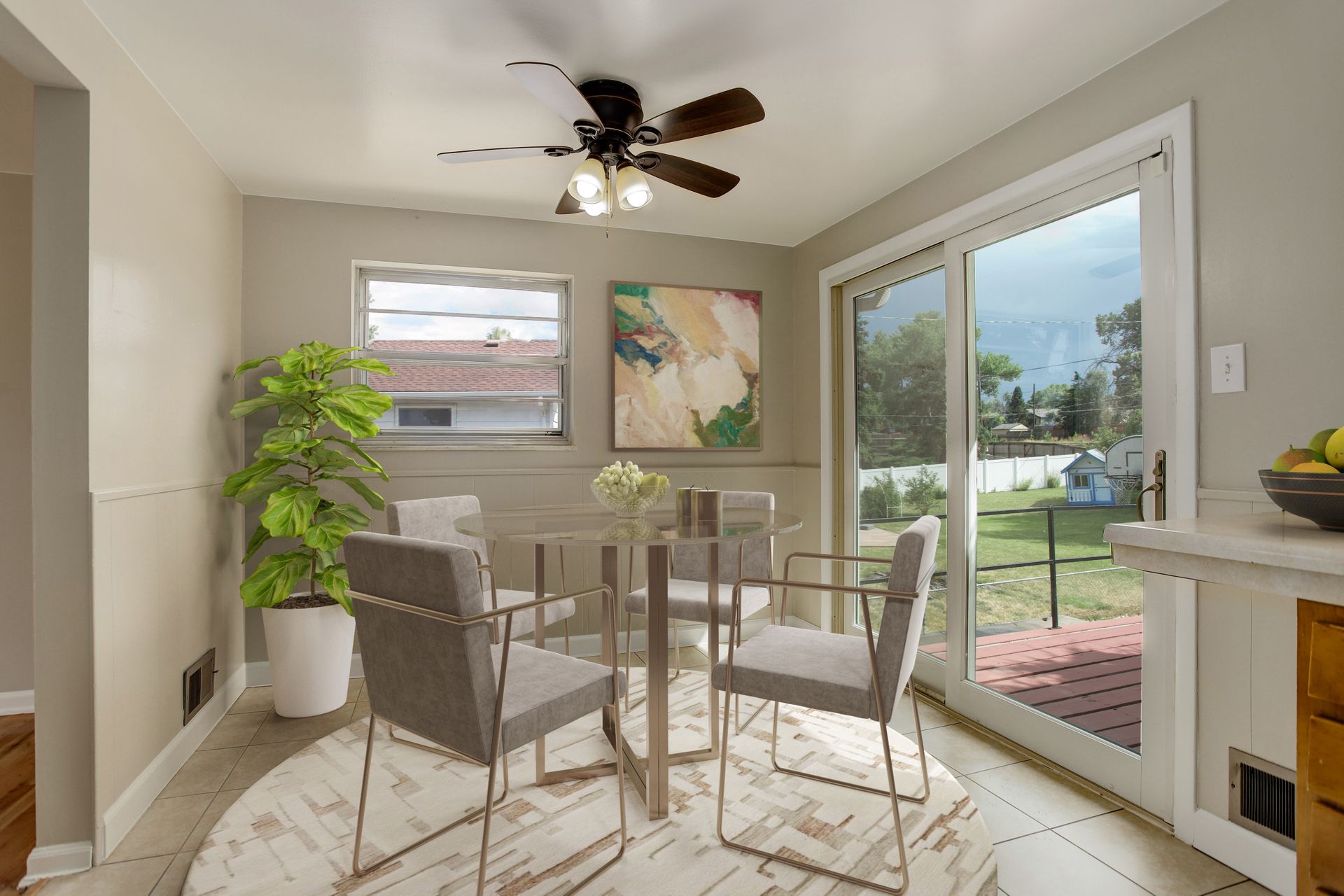 This property in prime West Northglenn boasts a spacious 9600 square foot lot with convenient, wide, side yard access to the rear yard via a concrete driveway. It features mature trees and backs onto a trail, providing a serene backdrop. The home itself offers five bedrooms and the lower level fifth bedroom is large enough to flex as a family room, game room, media room – you decide! There are two bathrooms, both updated, along with updated lighting throughout. Large upper-level great room with original hardwood flooring. Other recent updates include new James Hardie lap siding, fresh interior paint and new carpet. The kitchen is equipped with all appliances, complemented by a large eat-in space and tile flooring. The utility room is substantial, accommodating a side-by-side washer and dryer, a utility sink and new flooring. Additional features include a spacious deck overlooking the picturesque rear yard, complete with a lower patio and a shed for extra storage and an oversized, attached two-car garage with rear yard service door access. The location offers easy access to I-25 making commuting convenient and is close to amenities such as Starbucks and the Northglenn Market Place, offering various shops and restaurants. The home is move-in ready with opportunities for personalization to suit future preferences.